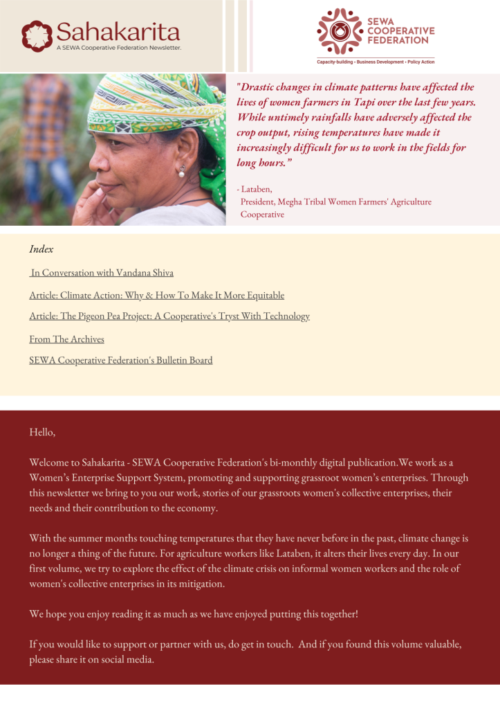 Welcome to Sahakarita - SEWA Cooperative Federation's bi-monthly digital publication.We work as a Women’s Enterprise Support System, promoting and supporting grassroot women’s enterprises.