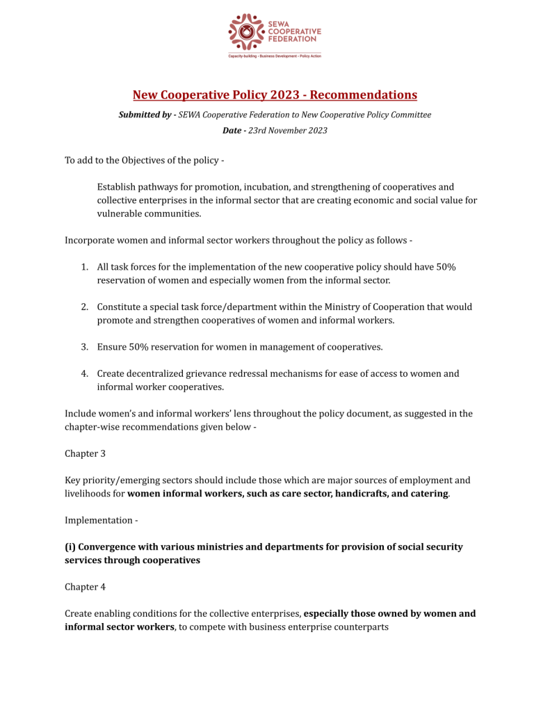 Establish pathways for promotion, incubation, and strengthening of cooperatives and collective enterprises in the informal sector that are creating economic and social value for vulnerable communities.